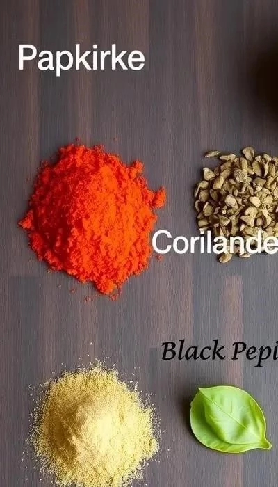 - Специи: 1 ч. ложка паприки, 0.5 ч. ложки кориандра, 0.5 ч. ложки черного перца, соль по вкусу