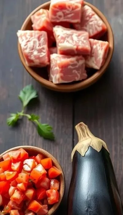 - Баклажаны: Промыть, удалить плодоножку и нарезать кубиками. Чтобы убрать горечь, можно посолить баклажаны и оставить на 20-30 минут, затем промыть и обсушить.