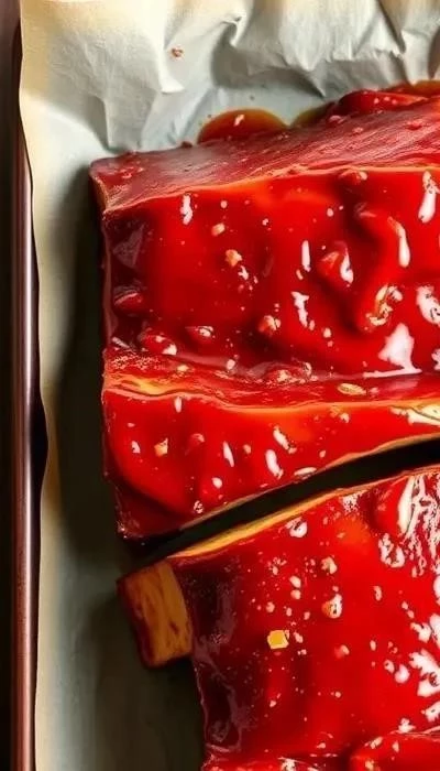 Инструкция: Ребрышки замариновать в смеси томатной пасты, уксуса, сахара и паприки на 45 минут. Запекать в духовке при 180°C в течение 1 часа, периодически смазывая глазурью.