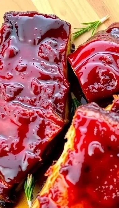 Инструкция: Ребрышки замариновать в смеси томатной пасты, уксуса, коричневого сахара, паприки, чесночного порошка и лукового порошка на 2 часа. Запекать в духовке при 160°C в течение 2 часов, периодически смазывая глазурью.