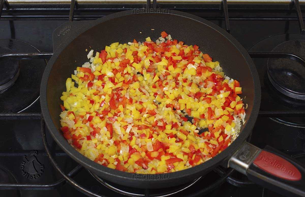 5. Добавить порезанный болгарский перец и готовить еще 5 минут.