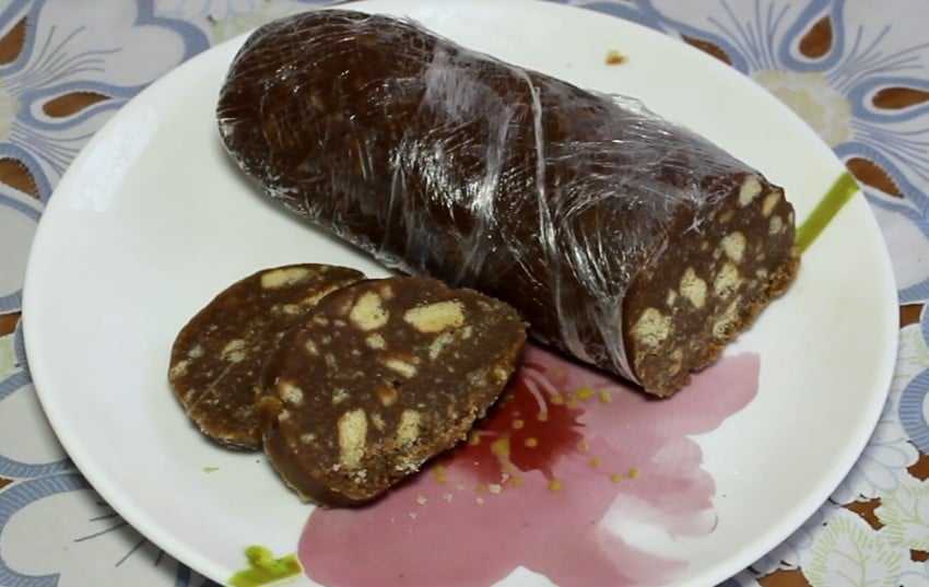 Полежав 24 часа в холодильнике, шоколадная колбаса готова к употреблению