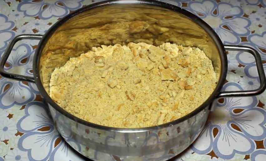 - Рекомендуется отдавать предпочтение песочному печенью. Больше всего подходит «Юбилейное», «Минусинское» или «Детское сахарное». Оно должно хорошо ломаться, но не крошиться при легком надавливании. Многие хозяйки, сторонницы безотходного производства выпечки, используют сухие бисквитные коржи домашнего приготовления, которые остались недоеденными.