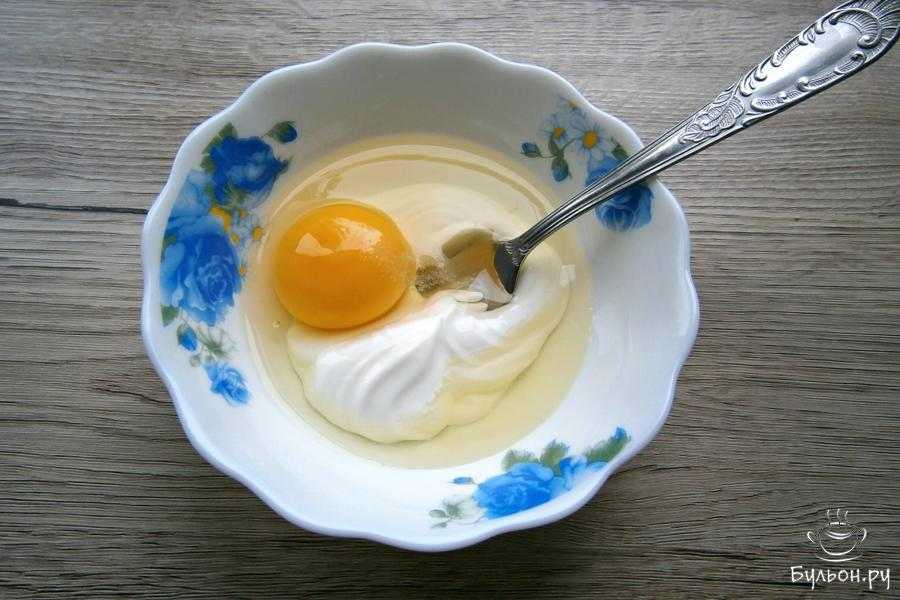 К нежирной сметане добавить сырое яйцо и чуточку соли.