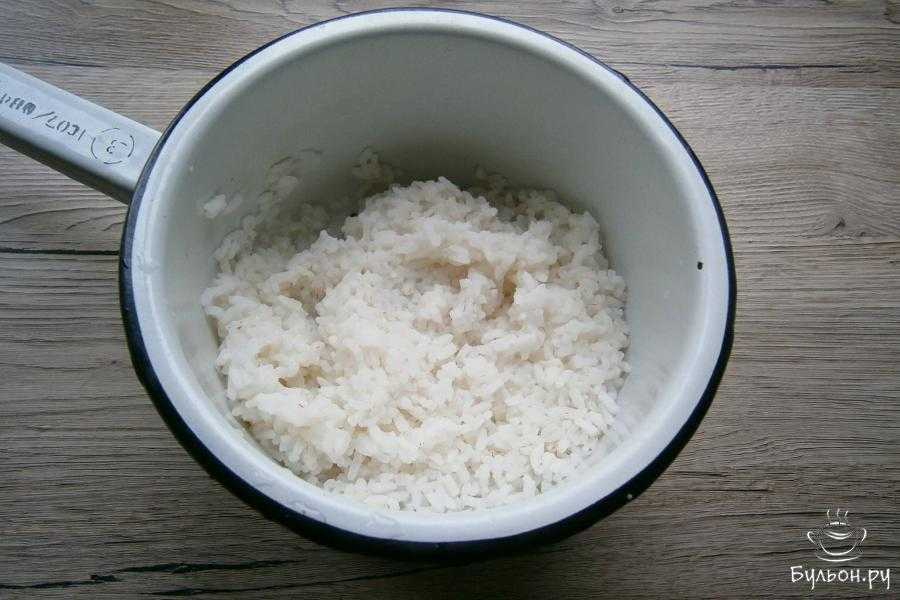 - Хорошо промойте 100 г риса под холодной проточной водой. Выложите рис в кастрюльку, залейте водой (ее должно быть в два раза больше, чем риса) и отварите до готовности (около 20 минут). Потом оставьте его остывать минут на 15.
