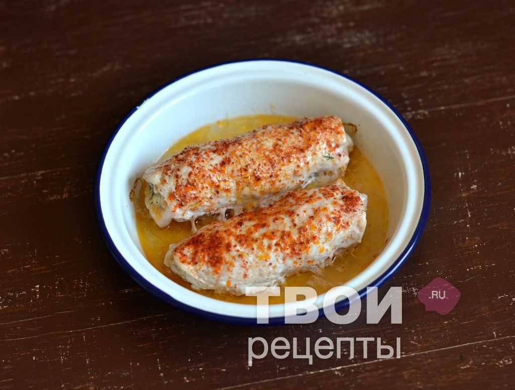 Рецепт мясных рулетиков из свинины с начинкой из сыра в сливочном соусе в духовке