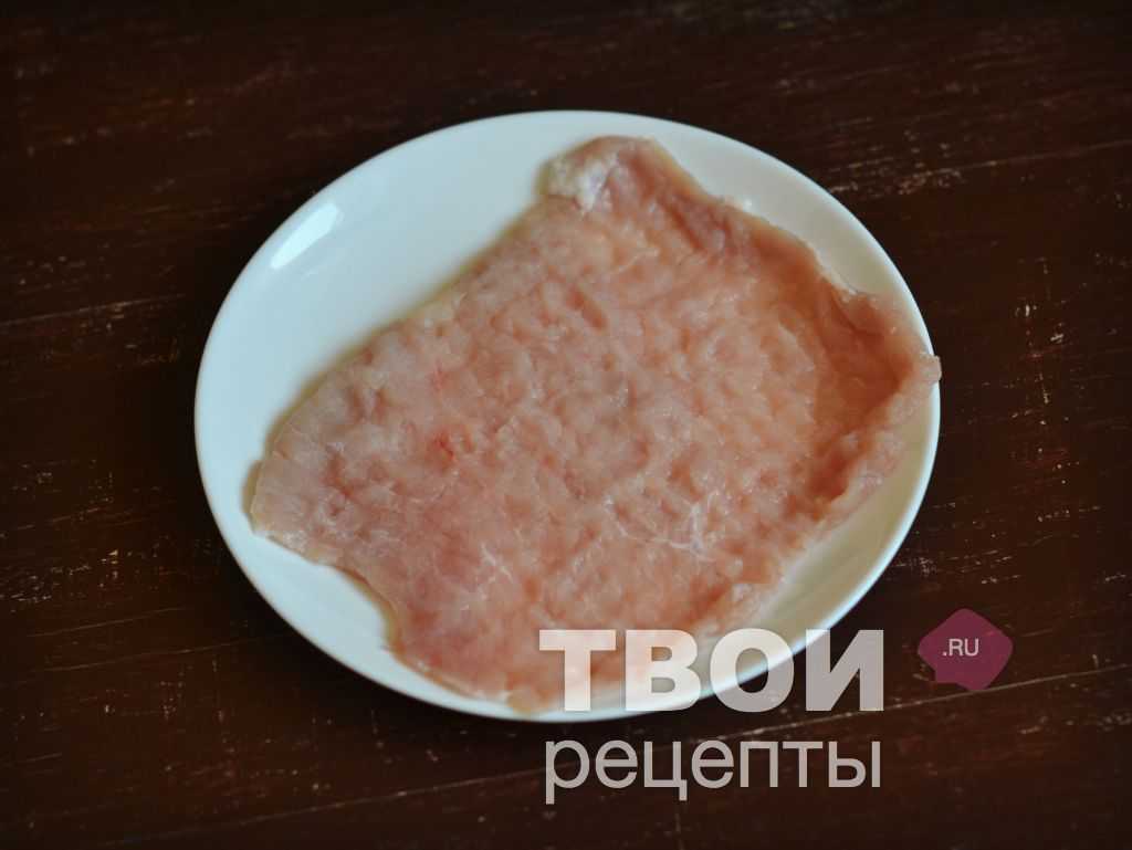 • Мясо. Используется свиная вырезка или любая мякоть без жил и пленок, которую легко нарезать пластинками. Затем они отбиваются кухонным молоточком.