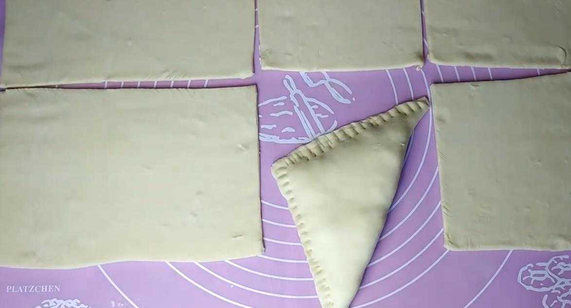 Соедините края теста, чтобы пирожки получились треугольной формы.