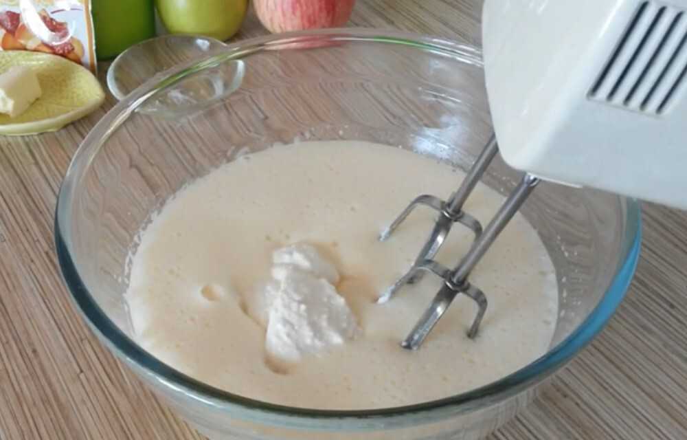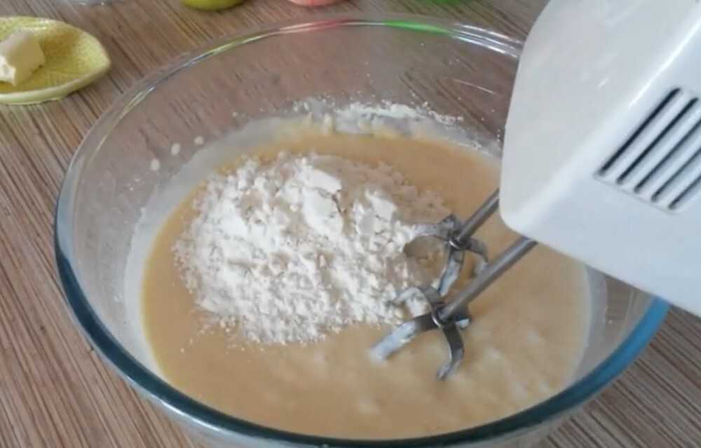 Начинаем приготовление пирога шарлотки с яблоками с замешивания теста.