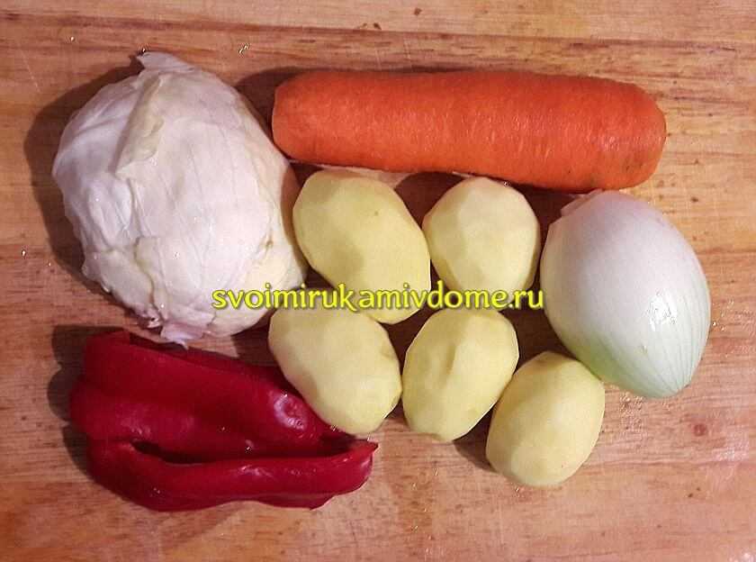 2. Пока бульон варится занимаюсь овощами — нарезаю небольшими кусочками морковь и лук, картофель — некрупными кубиками. Капусту стараюсь нашинковать как можно тоньше.