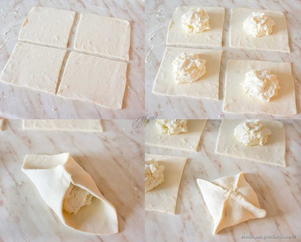 Слойка с творогом из слоеного теста по простому пошаговому рецепту с фото