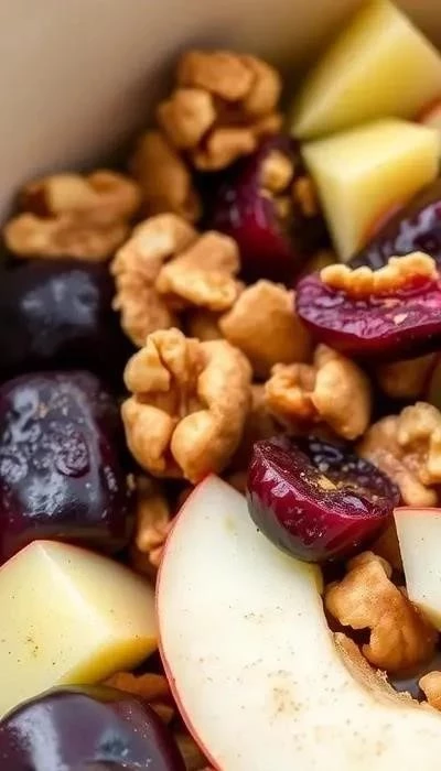 Начинка: Очистите 2-3 яблока от кожуры и сердцевины, нарежьте небольшими кубиками. Добавьте 100 г чернослива без косточек (предварительно замочите в горячей воде на 15-20 минут, затем обсушите), 50 г грецких орехов (измельчить). Смешайте яблоки, чернослив и орехи. Добавьте 1 чайную ложку корицы, ½ чайной ложки мускатного ореха и щепотку гвоздики. Тщательно перемешайте.