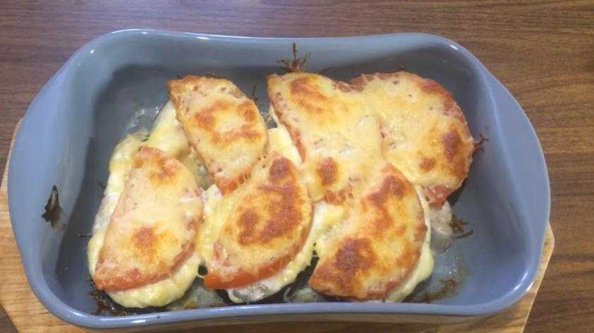 - Вынуть блюдо из духовки, снять фольгу, натереть сыр. Запечь в духовке до золотистой корочки.