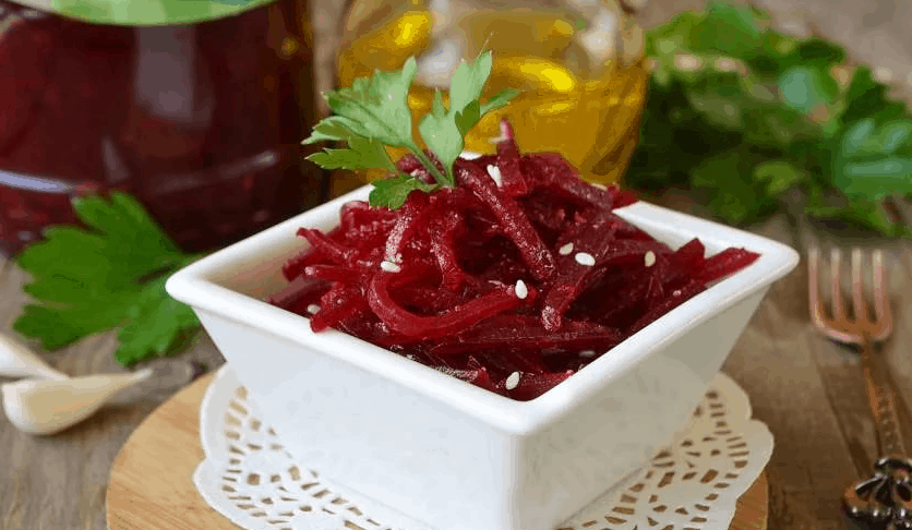 Свежая маринованная свекла по-корейски является традиционным вариантом заготовки салата.