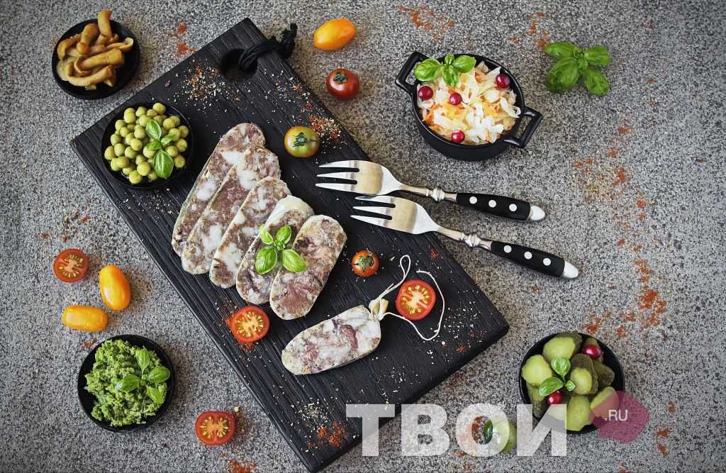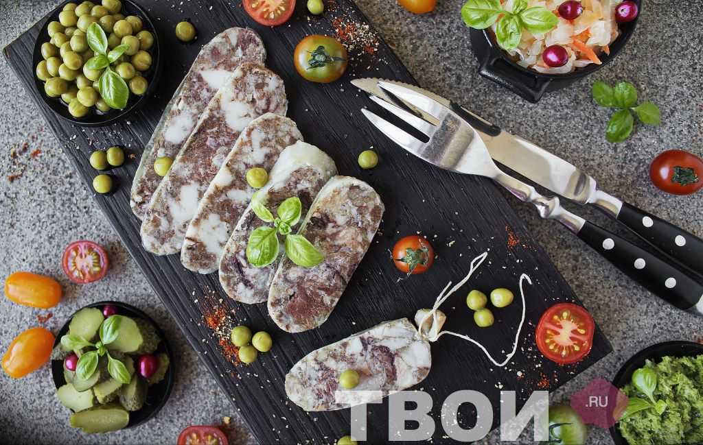 Еще один вариант – аккуратно срезать с уже отваренной свиной головы кожу (с прослойками жира) и потом в эту кожу завернуть порезанную мякоть с приправами. Именно такой аппетитный рулет показан на самом первом фото.
