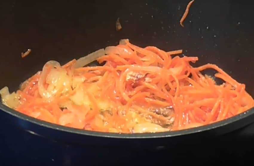 - Перед приготовлением нужно нарезать лук тонкими полукольцами, на крупной терке натереть морковь, измельчить чеснок.