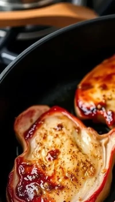 Разогрейте духовку до 180°C. В сковороде разогрейте растительное масло и обжарьте свиные отбивные с обеих сторон до золотистой корочки. Это займет примерно по 3-4 минуты с каждой стороны. Обжаривание необходимо для запечатывания соков внутри отбивных.