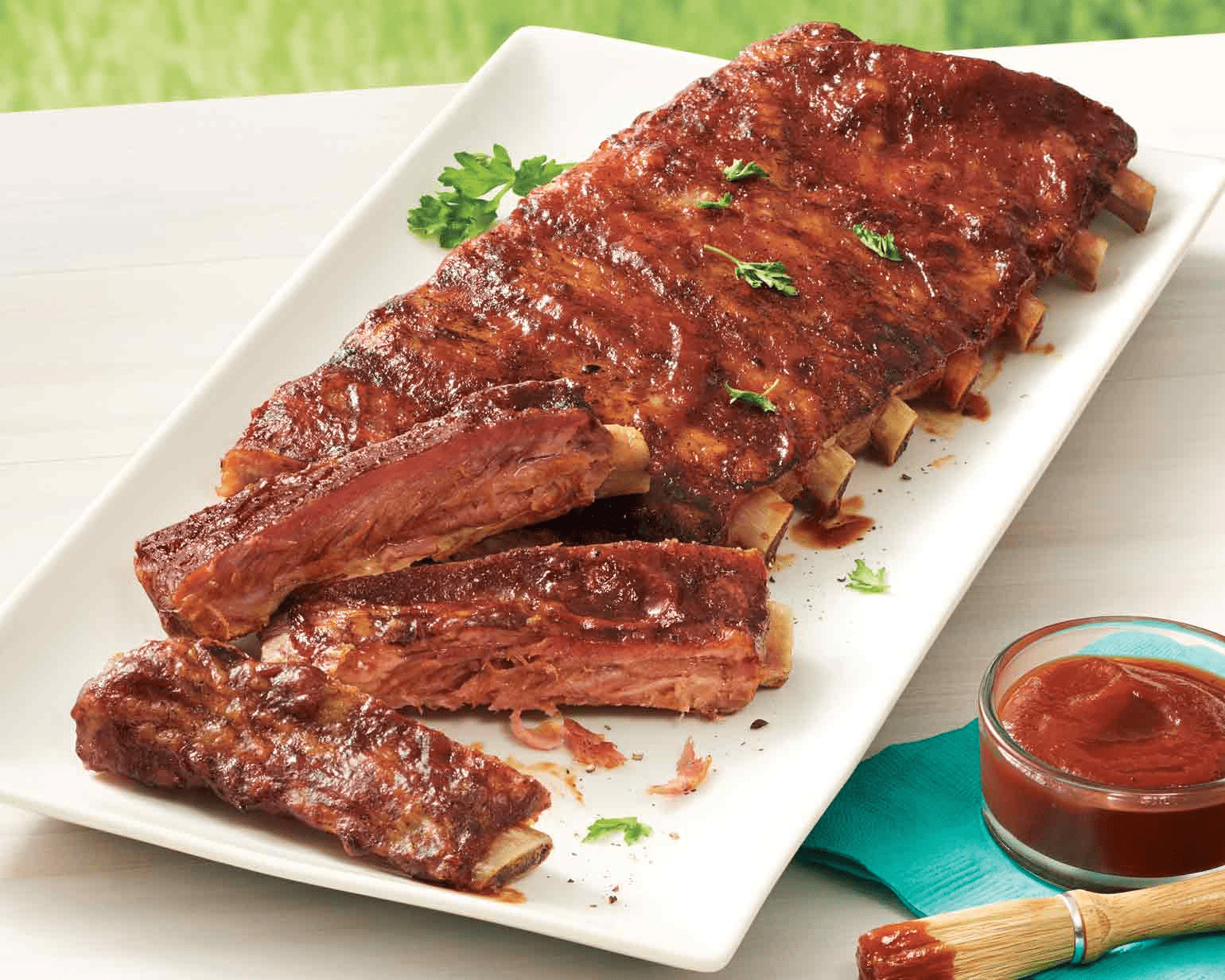 Обычно в торговых сетях или на базарах свиные ребра не продают по одному. Чаще всего, ребра нарублены по несколько штук с достаточно большим мясом и жира.Если ребра нарублены достаточно длинно, для одной порции достаточно 1-2 реберных косточек с мясом. Свиные ребра в духовке или печи готовятся целым куском ил с небольшими надрезами в толстых местах. И только после окончания готовки ребра разрезаются на порции.