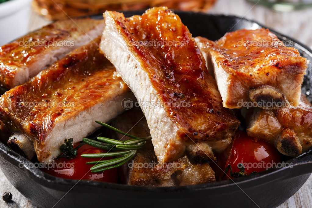 Рецепт жареных свиных ребрышек в духовке или на сковороде