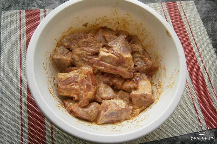 Ребрышки тщательно перемешать и помять руками, оставить для маринования при комнатной температуре на пару часов.