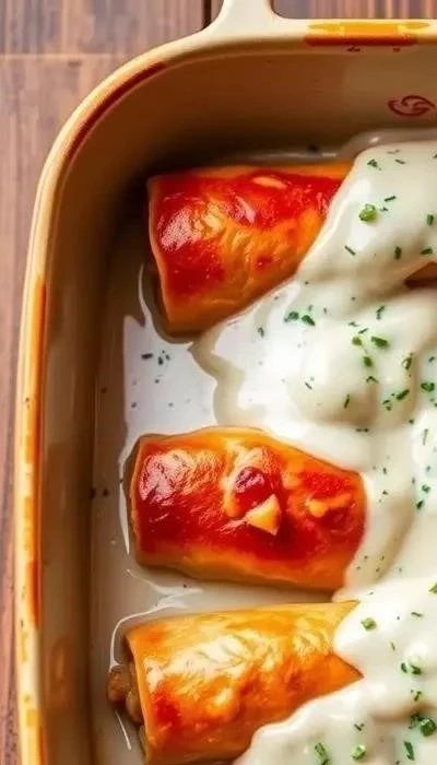 - Запекание рулетов: Выложите рулеты в форму для запекания, смазанную растительным маслом. Залейте сметанным соусом. Запекайте в разогретой до 180°C духовке в течение 40-50 минут, до готовности мяса.
