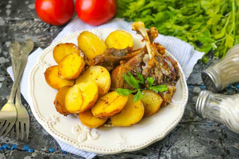 Кроме этого, к утке с картошкой подают мелко порезанную зелень.
