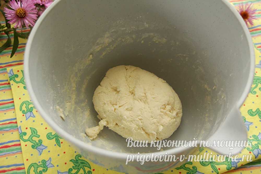 - Замешиваем тесто сначала ложкой, затем руками. При необходимости подсыпаем еще муки. Готовая масса должна немного липнуть к ладоням.