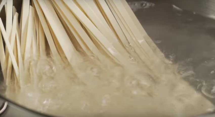 - Отварите в подсоленной воде лапшу удон, как указано на упаковке.