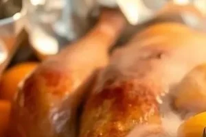 - За 30 минут до готовности увеличьте температуру до 200°C, чтобы кожа стала хрустящей.