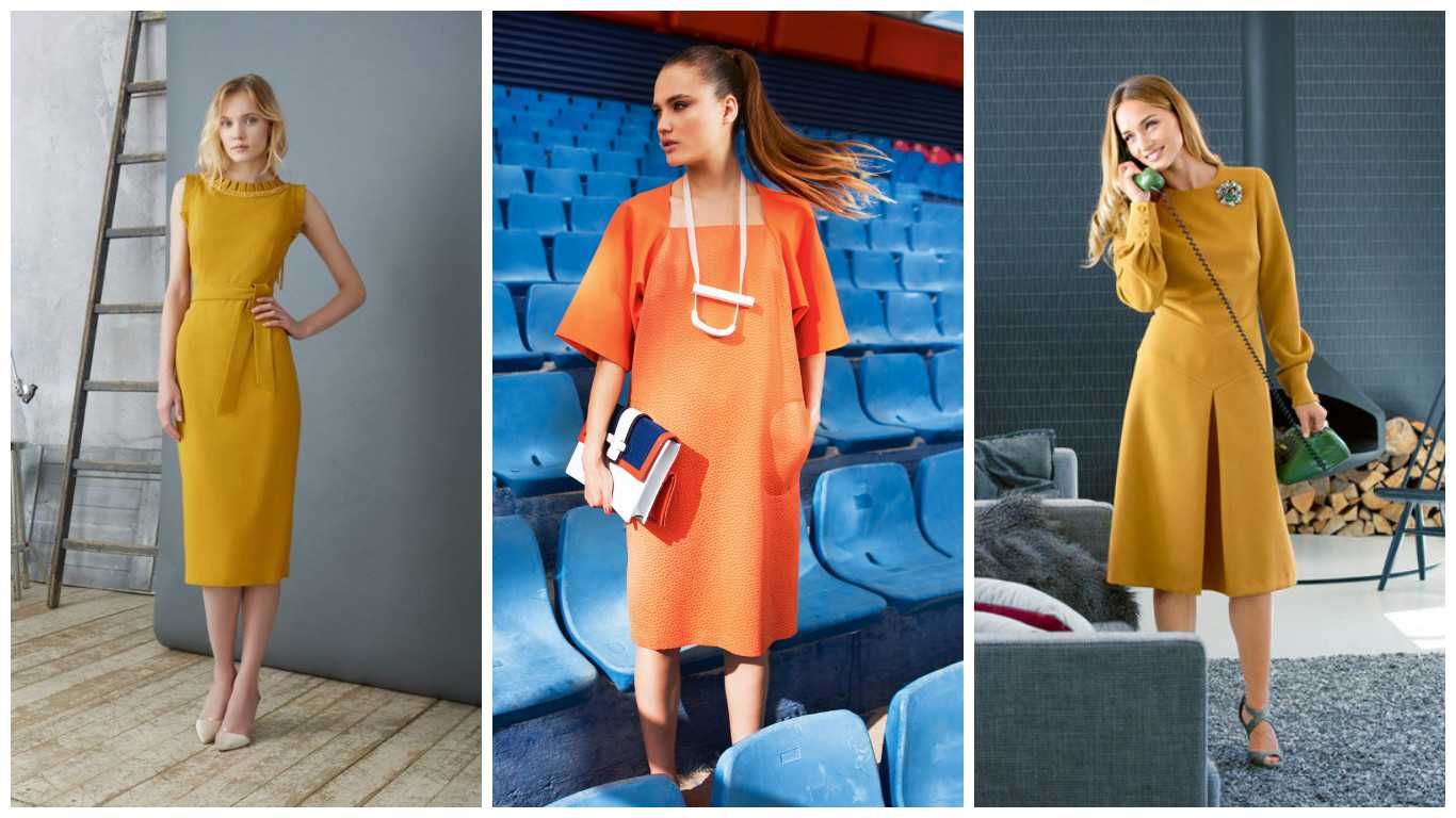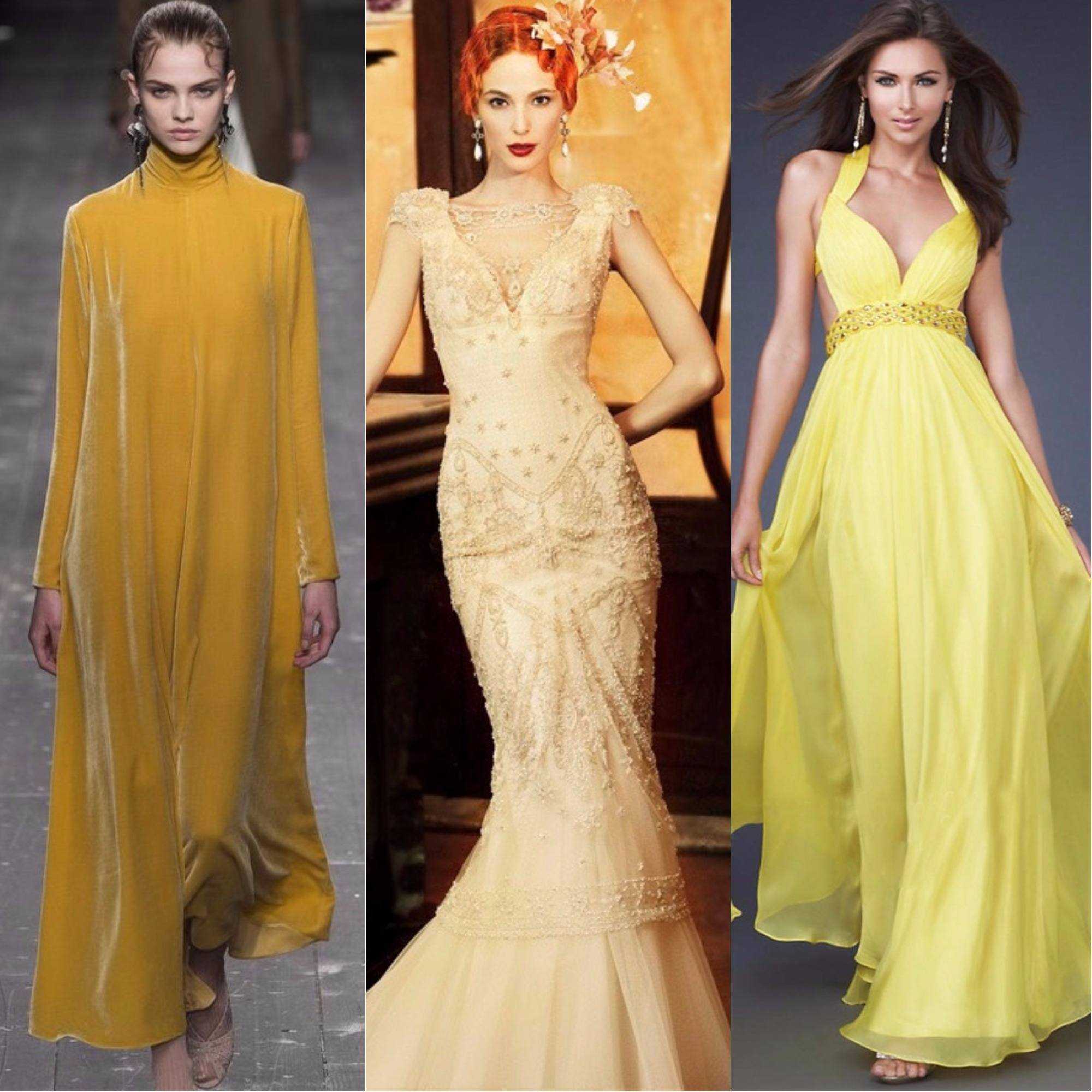 Следует особое внимание уделить классическим моделям в спокойных оттенках. Идеальный вариант – облегающее платье в пол в золотистом, желтом, горчичном, коричневом, оранжевом цвете
