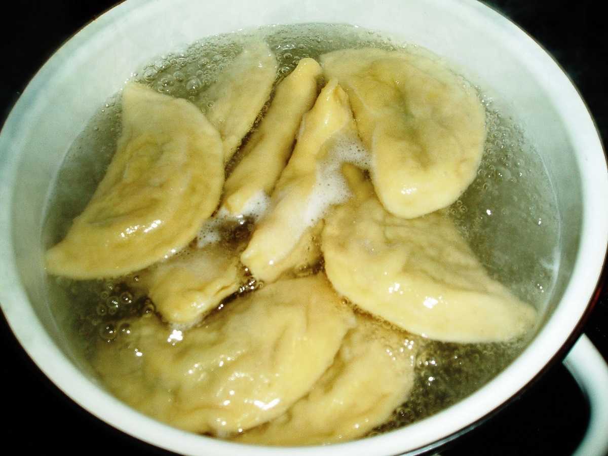 Выкладываем вареники с картошкой и капустой в кипящую воду, аккуратно перемешаем их, чтобы они не прилипли ко дну кастрюли. Варим вареники после всплытия 5-7 минут при слабом кипении.