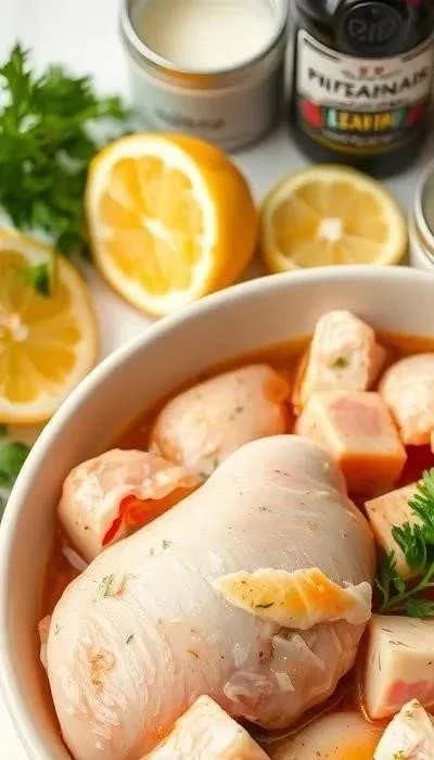 - Лимонный маринад: 500 г куриного филе, сок 1 лимона, 2 ст.л. оливкового масла, 1 ч.л. соли, 0.5 ч.л. черного перца, 1 ч.л. сушеного орегано. Лимонный сок освежает вкус мяса и делает его более нежным. Время маринования: минимум 1 час, идеально – 3-4 часа.