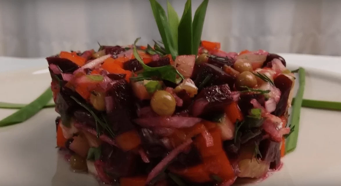 Винегрет — это довольно известный вегетарианский салат, полюбившийся многим за свой приятный вкус и несомненную пользу для здоровья и в частности ЖКТ, ведь в его составе нет ничего жирного, жареного или ненатурального — только овощи, по большей части отварные, и растительное масло для заправки.