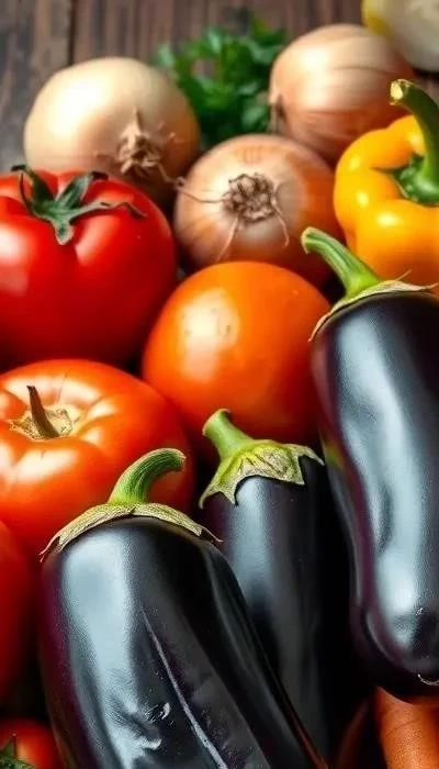 Баклажаны: Отдавайте предпочтение баклажанам среднего размера, с гладкой, блестящей кожурой и плотной мякотью. Избегайте баклажанов с пятнами или повреждениями. Молодые баклажаны не требуют очистки от кожуры, а более зрелые лучше очистить, чтобы избавиться от горечи.