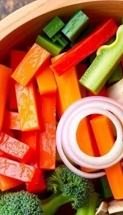 - Овощи: Выбор овощей зависит от ваших предпочтений, но классический набор включает: морковь, болгарский перец (красный, желтый, оранжевый), брокколи, лук репчатый, шампиньоны. Также можно добавить цуккини, спаржу, стручковую фасоль, пекинскую капусту. Важно: используйте только свежие и качественные овощи!
