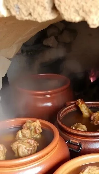- Томление в духовке: Закрыть горшочки крышками и поставить в разогретую до 180 градусов духовку на 2-2,5 часа. Время приготовления может варьироваться в зависимости от возраста баранины.