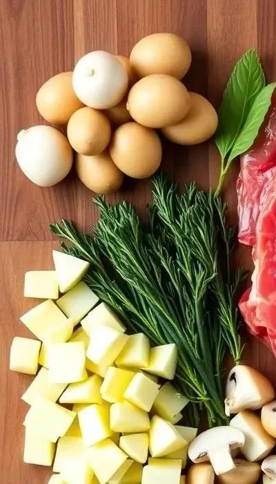 Картофель: Идеально подойдут сорта картофеля с умеренным содержанием крахмала, такие как «Гала», «Ред Скарлетт» или «Беллароза». Они хорошо держат форму при тушении и не развариваются. Картофель должен быть твердым, без повреждений и зеленых пятен. Очистите картофель и нарежьте его крупными кубиками, примерно такими же, как и мясо.