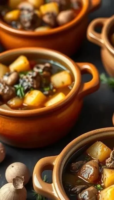 - Тушение в духовке: Накройте горшочки крышками или фольгой и поставьте в разогретую до 180 градусов духовку на 2-2,5 часа. Время тушения зависит от возраста и качества мяса. Проверяйте готовность мяса и картофеля вилкой.