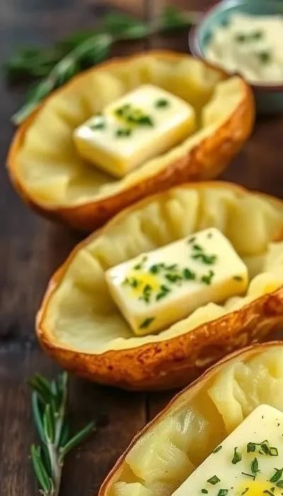 В небольшой миске смешайте оливковое масло, размятый чеснок, измельченный розмарин и тимьян. Добавьте растопленное сливочное масло и тщательно перемешайте. Дайте маслу настояться 10-15 минут, чтобы оно пропиталось ароматами трав и чеснока. Это придаст картофелю неповторимый вкус и аромат.
