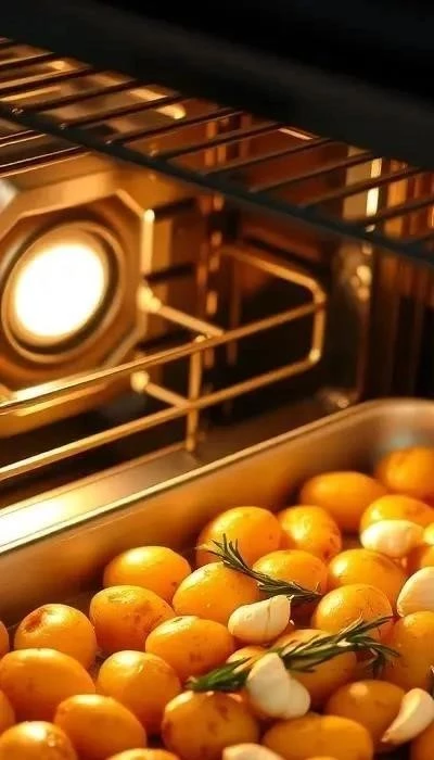 Запекание: Запекайте картофель в разогретой духовке в течение 30-40 минут, или до золотистой корочки и мягкости. В середине процесса запекания (примерно через 20 минут) переверните картофель, чтобы он пропекся равномерно со всех сторон. Если картофель начинает слишком быстро подрумяниваться, накройте противень фольгой.