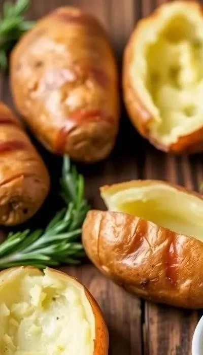 Сервировка: Подавайте запеченный картофель горячим, посыпав свежей зеленью (петрушкой, укропом или зеленым луком). Он прекрасно сочетается с жареным или запеченным мясом (говядиной, свининой, курицей), рыбой (лососем, треской), овощами-гриль или салатами. Запеченный картофель с розмарином и чесночным маслом – это универсальный гарнир, который подойдет к любому блюду!