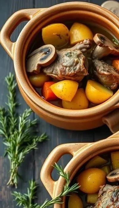 - Накройте горшочки крышками и поставьте в разогретую до 180°C духовку на 2-2,5 часа. Время тушения может варьироваться в зависимости от возраста мяса и размера горшочков.