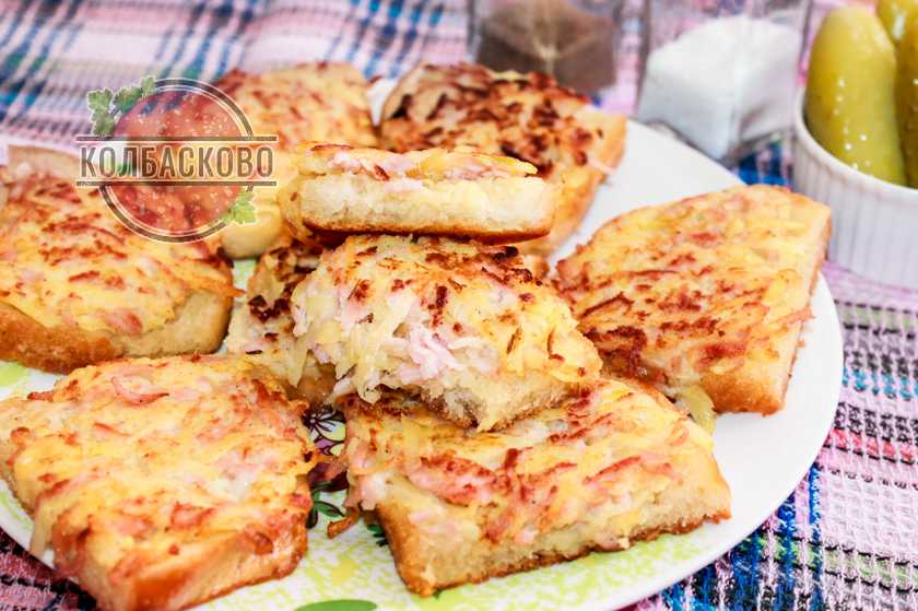 Рецепт горячих бутербродов с картошкой и колбасой на сковороде