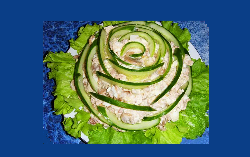 Самый вкусный салат «Женский каприз» с грибами, ветчиной, огурцом и орехами