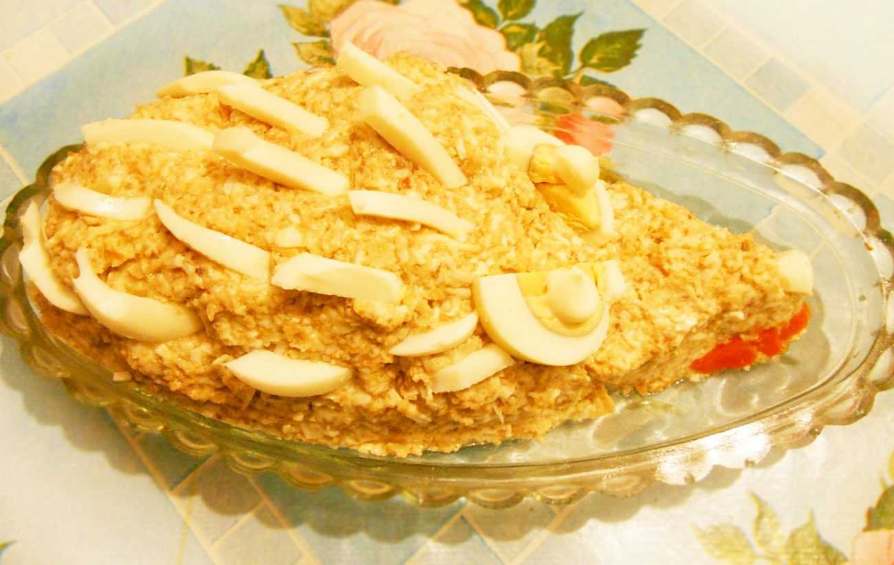 Рецепт 4: грибной салат Ежик с копченым сыром