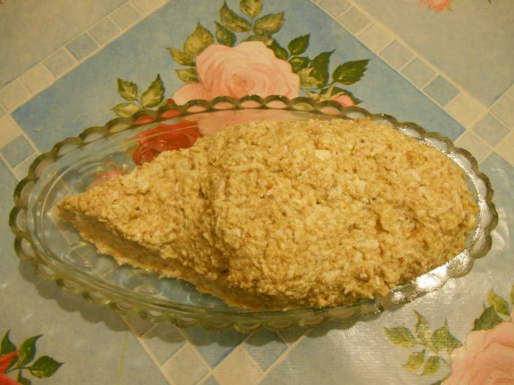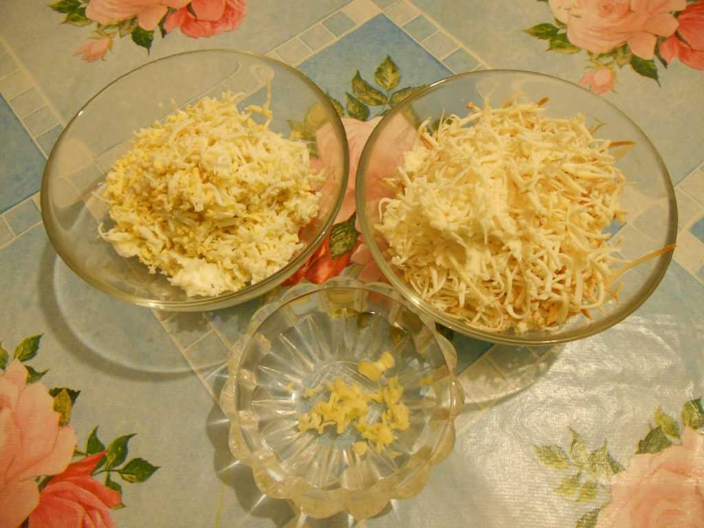 - Для измельчения яичек используют терку, помещают следующими на блюдо и промазывают соусом.