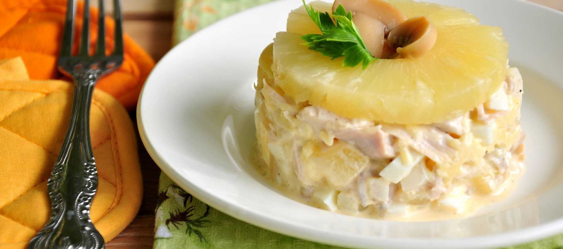 Как приготовить слоеный салат с курицей и ананасами: