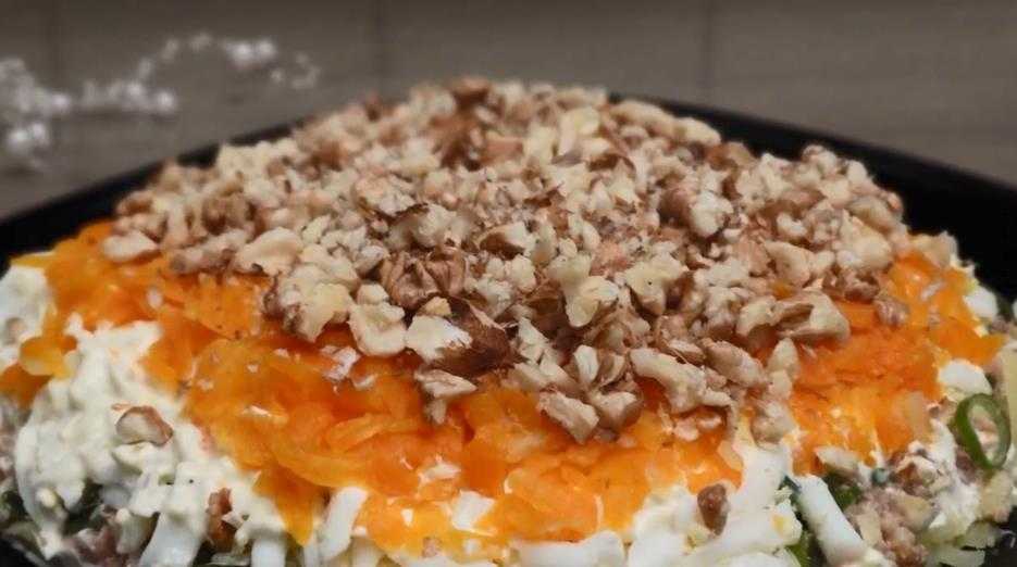 Секреты вкуса и устойчивой формыКак вы заметили, майонез и соль мы используем по вкусу. Обычно стоит присолить самые плотные слои — картофельный, белковый, печеночный и морковный. А майонезом можно промазывать лишь те ингредиенты, которые слишком структурные (зеленый лук, белок). Тогда салат не поплывет, но аппетитно пропитается соусом.