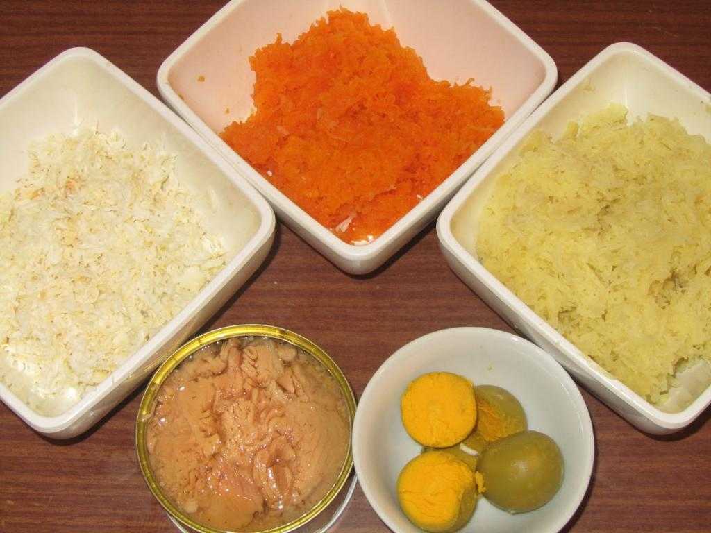 Как выложить слои по порядку в рыбном салате Мимоза