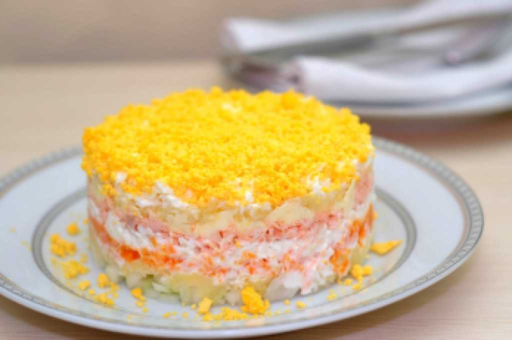 Салат «Мимоза» с плавленым сыром, сливочным маслом без картошки